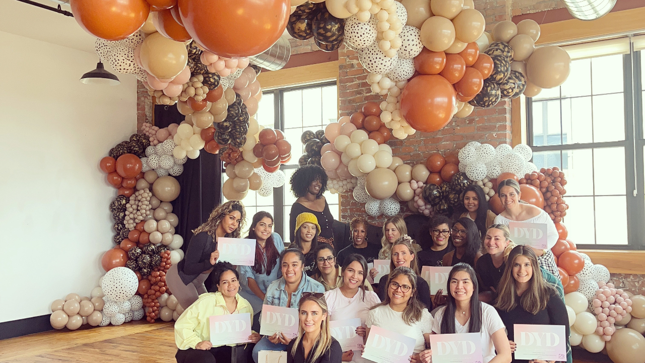Our in person classes are a hands on experience where Katherine will teach you her five step strategy to build beautiful and professional balloon garlands. At the end you will become a certified organic balloon stylist with Dress Your Daydream, $499 per person, payable in instalments.